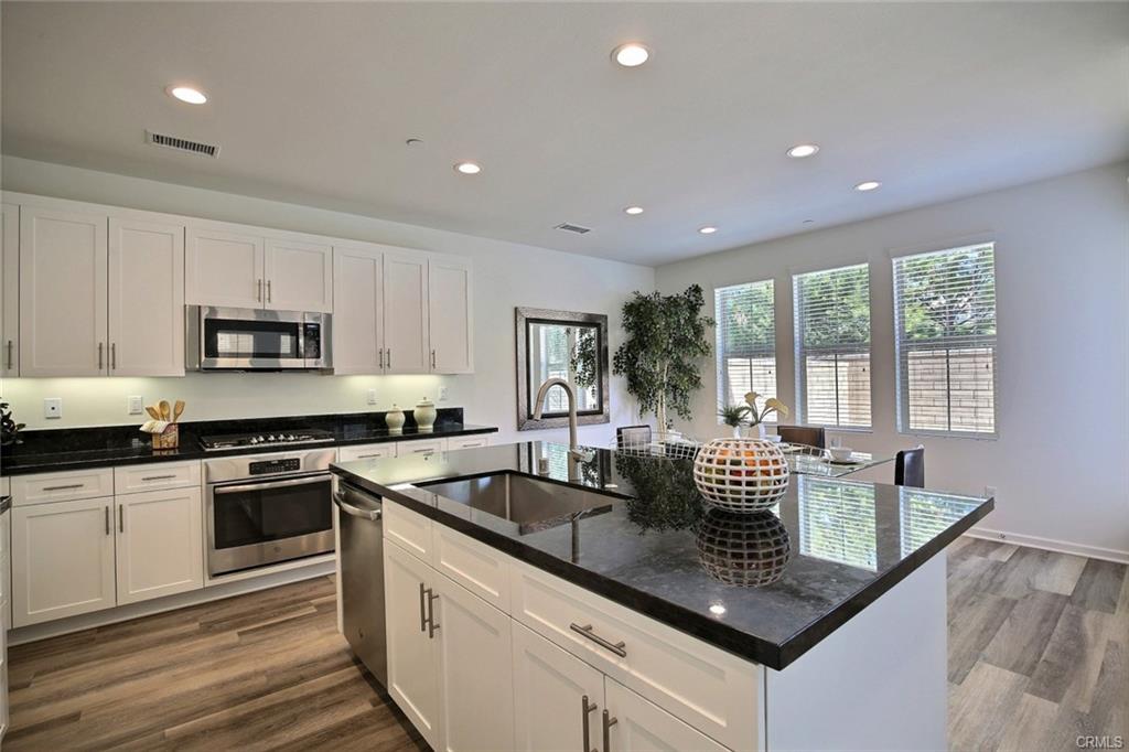 Welcome to this charming 3 bedroom 2.5 bathroom Home located at the highly desirable resort-like neighborhood “Baker Ranch”. This cozy home has an open floor plan with plenty of natural light. You will find upgraded hardwood-liked vinyl plank flooring throughout whole house, large window in every corner that brings in much natural light, and the gourmet kitchen with stainless steel appliances, granite counter-tops, modern white cabinets with a large island that is perfect for entertaining. Family can get together in the Great Room that consists of dining and entertaining spaces which open to the good size and low-maintenance paved back yard. Upstairs features 3 sizable bedrooms with 2 fully upgraded bathroom and a laundry room. Spacious master bathroom with dual vanities and a large walk-in closet. Enjoy Baker Ranch’s resort-style amenities that include pools, spas, clubhouse, parks, walking trails, tennis courts, basketball courts, picnic area, dog-park, BBQ areas, beach volley ball courts and more to find out. Fantastic location close to shopping, restaurants, entertainment and freeway. Low association dues and NO MELLOS ROOS. This home is a must-see, come check out before it is sold!!
